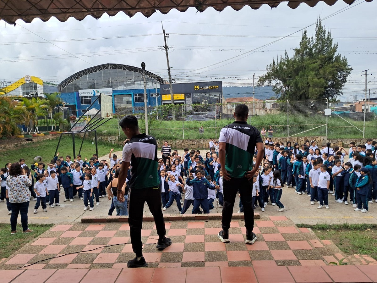Este viernes 25 de abril se celebró el día del niño con múltiples actividades lúdicas y recreativas para todos. Felicitaciones a todos nuestros niños, niñas y adolescentes en su día y muchas gracias a quienes colaboraron en su realización: A COMPENSAR, porque hicieron un preámbulo el día jueves 24 al descanso con juegos de mesa en gigante; al IDERF porque hicieron aeróbicos y baile para chicos y grandes; a la Secretaría de Educación a través del PAE porque ofrecieron un almuerzo especial (hamburguesas, papas fritas y jugo) que todos disfrutaron; a los estudiantes de once que lideraron los juegos de mesa para todos en el comedor; y en especial, a los profesores FREDY GARCÍA VELÁSQUEZ, FRANCISCO JAVIER FRANCO y ADRIANA BAENA ZULUAGA, quienes dieron lo mejor para liderar y organizar las actividades. Muchas gracias