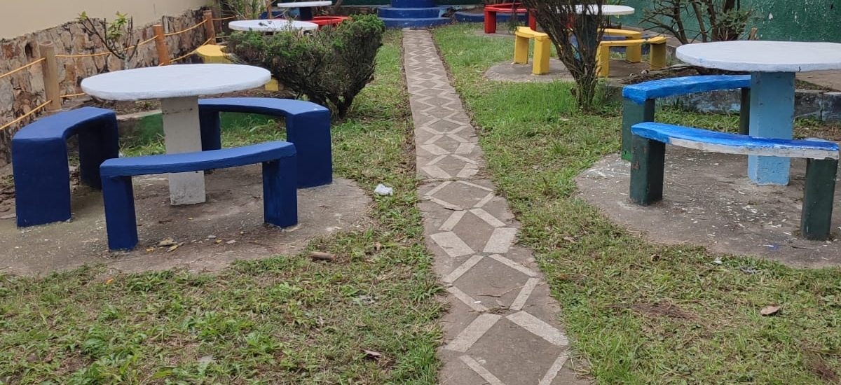 - Quinto: Mesas y sillas en concreto al lado de la capilla.
