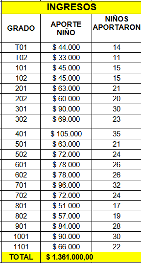 Aunque no todos los estudiantes colaboraron, el aporte por cada uno de ellos fue de $3.000 los cuales permitieron entregarles un helado y brindarles tres actividades con recreacionistas: una para bachillerato, una para primaria y un inflable para los más pequeños. Además, al final se entregaron premios a quienes se destacaron y participaron en la actividad programada.